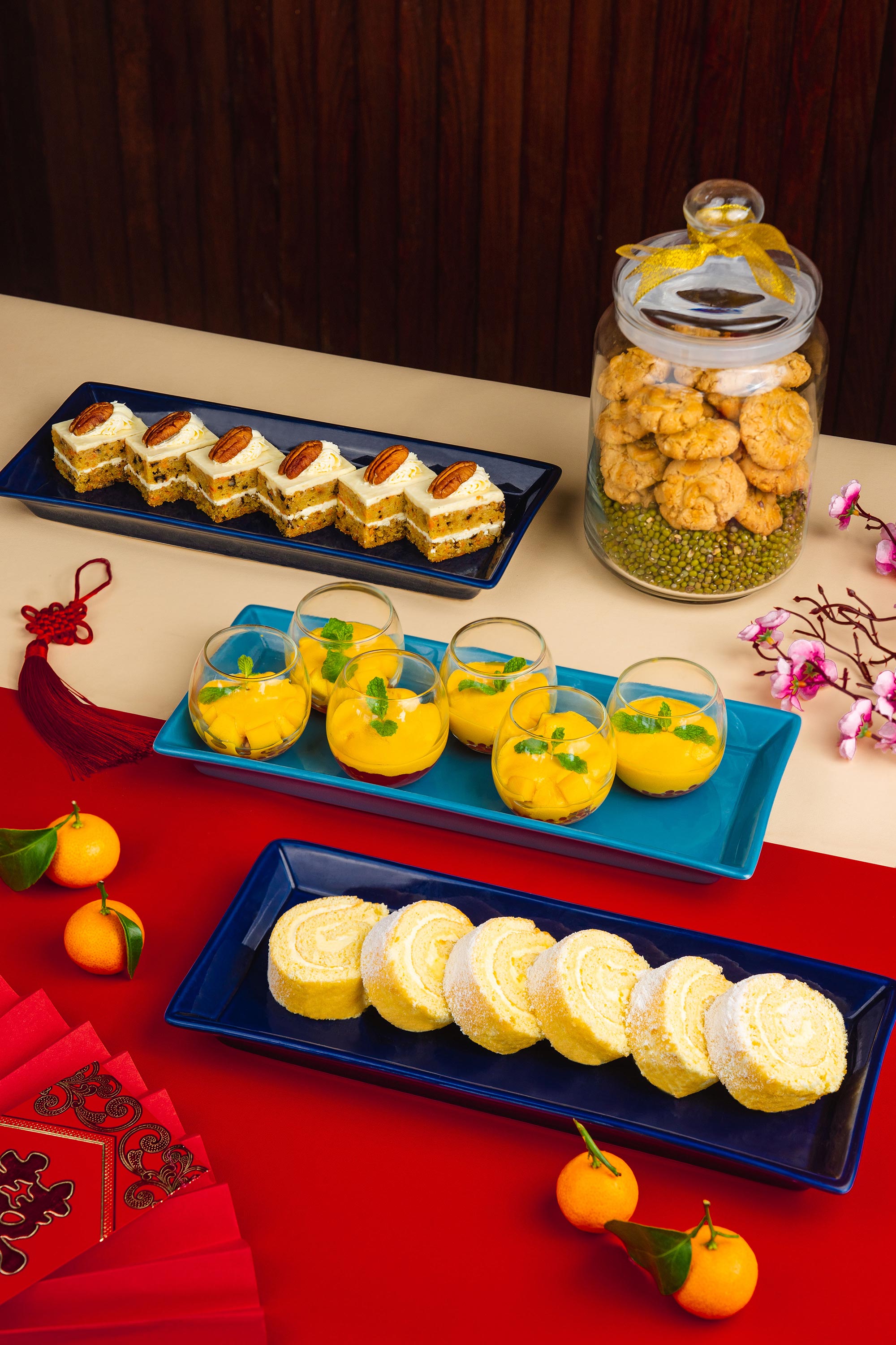 In celebration of an auspicious Lunar New Year, from 16 to 25 January 2023, a special themed afternoon tea available for guest to savor. Indulge in savory prosperity snacks including Crispy Vegetable Wonton, Shanghainese Dumpling, Chicken Siew Mai, Stuffed Pita Pocket, Chicken Gyoza, and Steamed Vegetable Bun. The afternoon tea set is also includes Mandarin Orange Chiffon, Mango Pudding, Egg Tart, Fried Sesame Ball, Peanut Cookies, Lapis Legit, and Dried Fruits and Plumps to treat the sweet tooth.